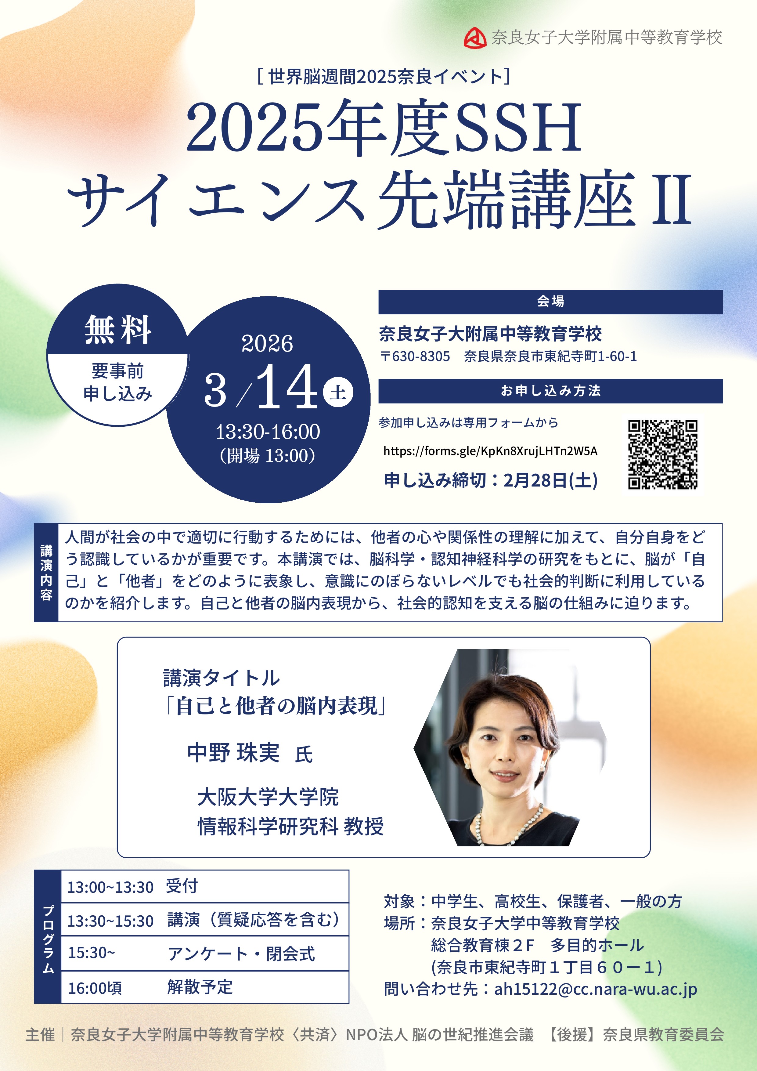 世界脳週間2025 奈良イベント 2025年度SSH サイエンス先端講座Ⅱ